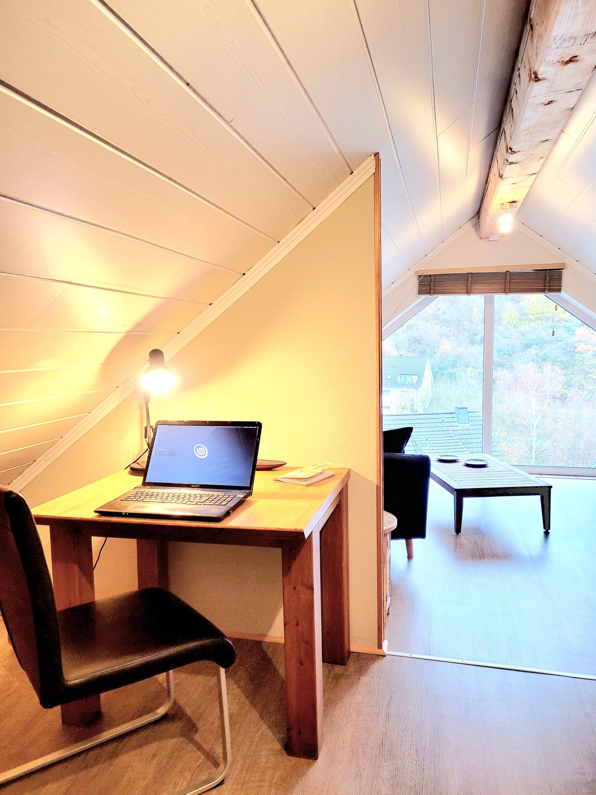 Un bureau est disponible pour votre ordinateur portable et/ou vos heures de création.